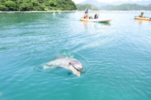 ・イルカとシーカヤック体験、養殖マグロの餌やり体験が毎年人気